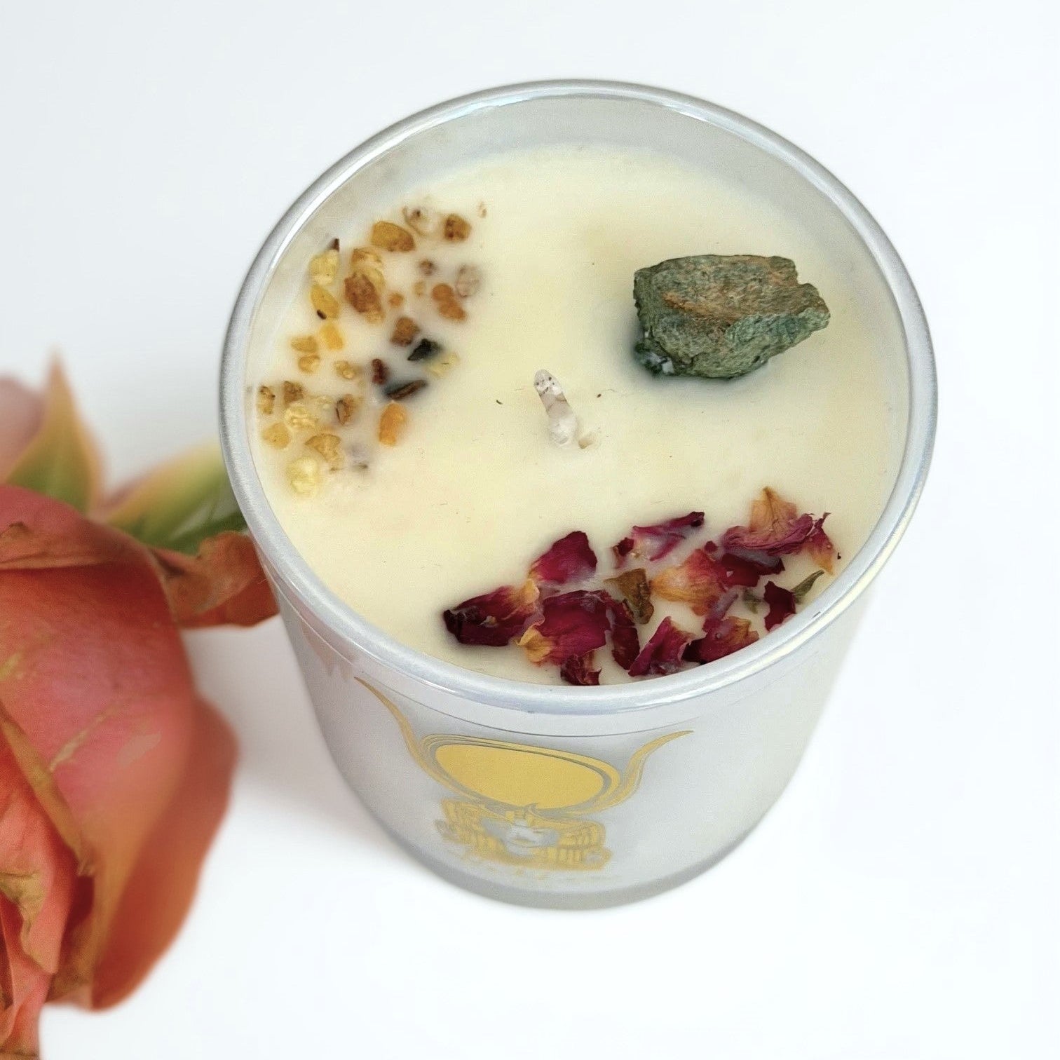 Adorned with rose petals as an offering to the goddess, blended with sacred frankincense to echo the ancient temples of Dendera, and paired with a gourmand scent that feels comforting, warm, and delightfully sweet, this candle wraps your senses in a soft, joyful embrace. The raw Turquoise stone nestled within amplifies Hathor’s intention, inviting beauty, creativity, and divine feminine pleasure into your practice. Frankincense brings purification and spiritual elevation, while the roses soften the heart and open you to love.